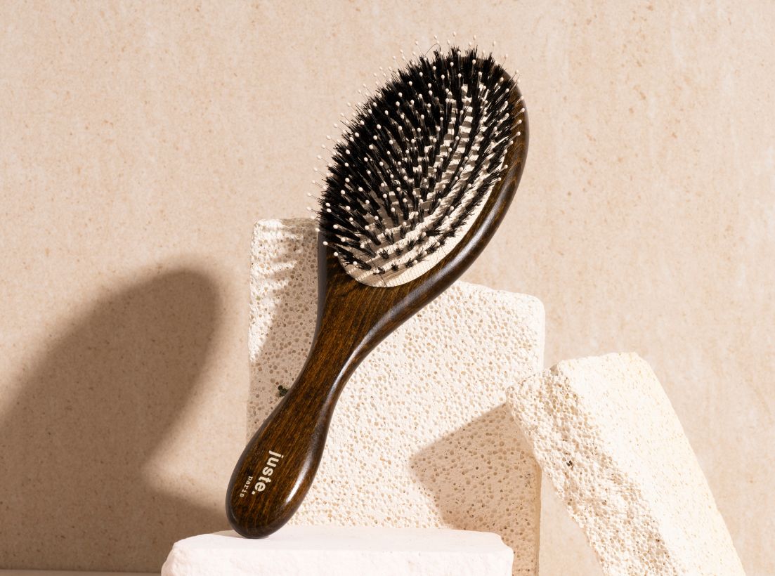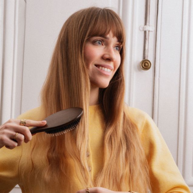 Des cheveux visiblement plus brillants, juste en les brossant. Ajoutez à cela un démêlage efficace et en douceur, cette irrésistible brosse poil de sanglier et picots nylons ne vous quittera plus :