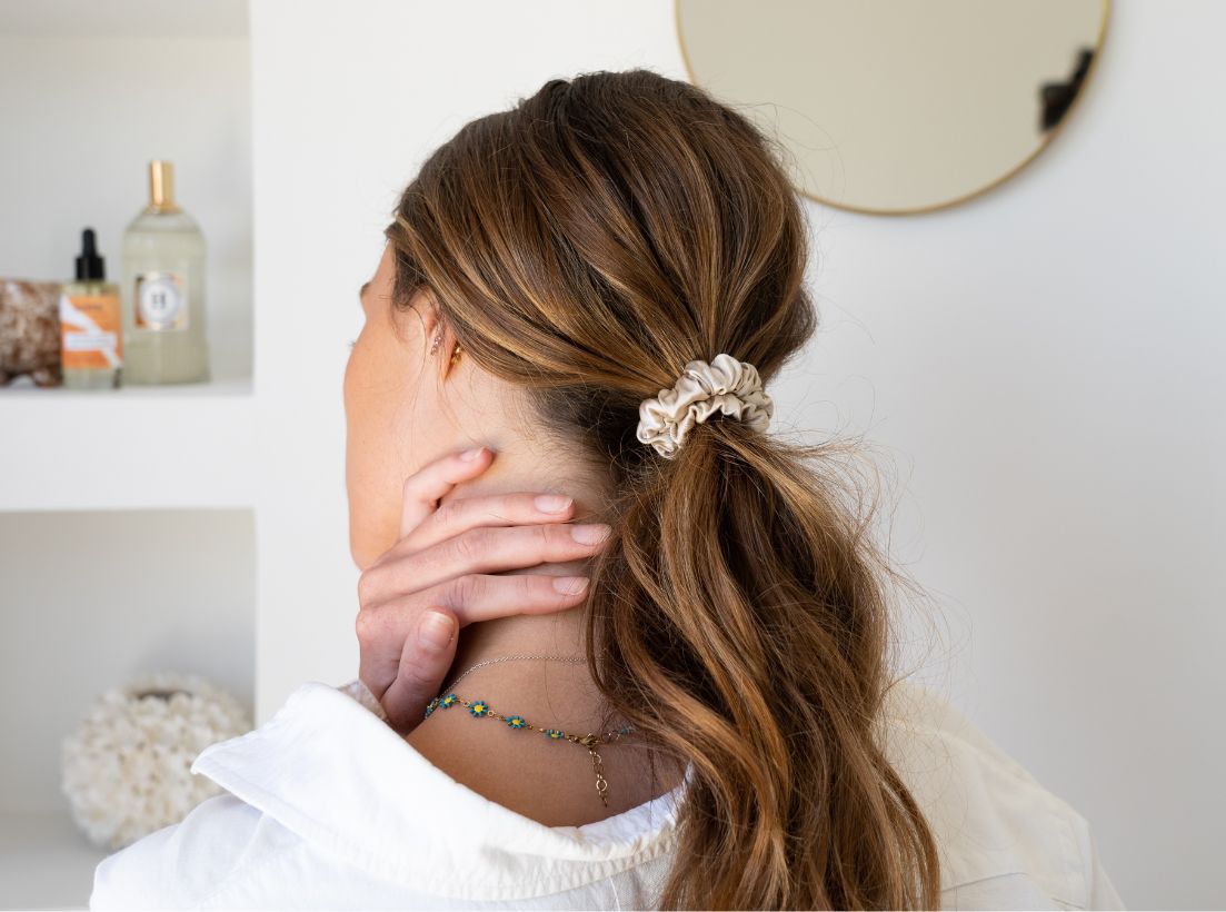 Tout simplement la meilleure matière pour attacher vos cheveux. Le chouchou en soie permet de prendre soin de vos cheveux tout en sublimant vos coiffures ⭐