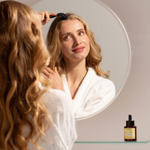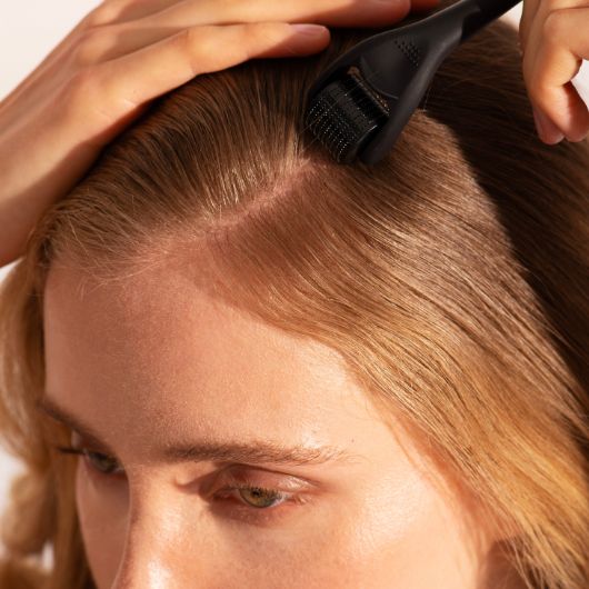 Agir sur le cuir chevelu pour des bénéfices sur les cheveux ! Le dermaroller ou microneedling (microaiguilles non douloureuses) offre un soin revitalisant au cuir chevelu en stimulant la circulation sanguine, le point de départ pour des cheveux en pleine forme.