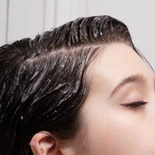 3. Rincez abondamment à l’eau tiède, puis poursuivez avec votre shampoing habituel.