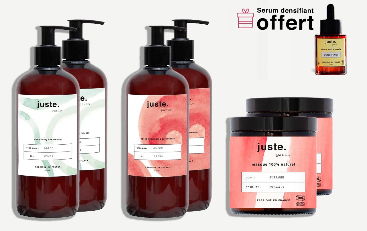 J'ai commencer a tester les produits juste paris depuis Février 2022 et je le les trouve géniaux. Les produits sente bons avec une bonne compo et adapter a mes cheveux. Les prix sont résonable et la livraison très rapide 2 à 5 jours.