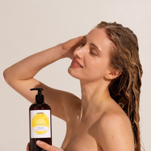 « Après avoir testé des centaines de produits du commerce, plus ou moins chers, aux promesses jamais tenues, j’ai découvert JUSTE . Mes cheveux méchés, fins et matures sont désormais brillants, souples, les mèches ne ternissent pas, le cuir chevelu ne gratte plus et j’espace les lavages!!! L’après shampoing est recommandé. Promesse tenue :) »